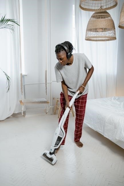 Regularly emptying the dustbin is crucial for maintaining optimal suction power and performance. Overfilling can reduce efficiency and potentially damage the vacuum. The dustbin is typically transparent, allowing users to easily monitor the fill level. Refer to the ‘Emptying the Dustbin’ section of this manual for detailed instructions on proper removal and disposal of collected debris, ensuring hygienic operation.